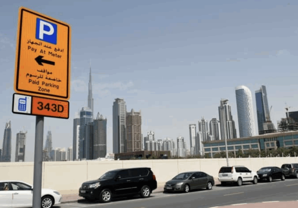 ドバイでは、路上駐車や市街地での駐車は原則として「指定された有料駐車場のみ利用可能」となっています。無断駐車や指定エリア外への駐車は高額な罰金の対象となるため、駐車ルールと支払い方法をしっかり把握しておくことが大切です。指定された有料駐車場は、写真のような看板が設置されています。